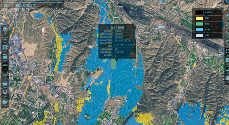 系统支持台帐和图形一体化的展示功能,系统提供规划成果浏览、查询、统计等基础管理功能。