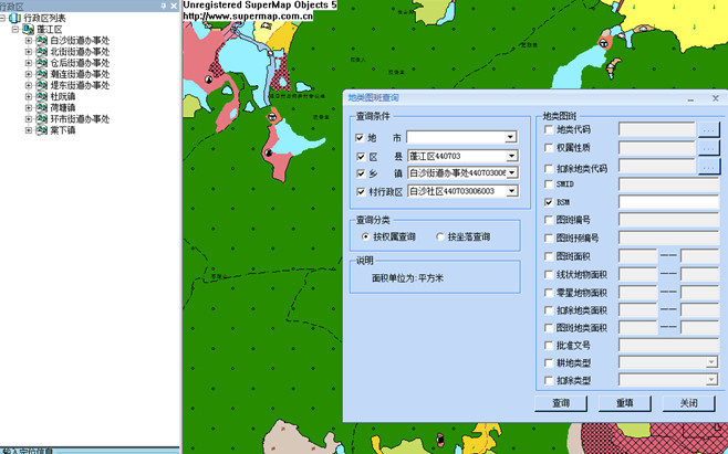 用地规模查询、汇总、分析功能,实现统计结果与位置信息相互对照, 同时在图形界面上,提供剩余规模的再检索过滤能力,对行政区、土地用途区、面积等信息进一步精确细化,方便业务办理人员数据统计。